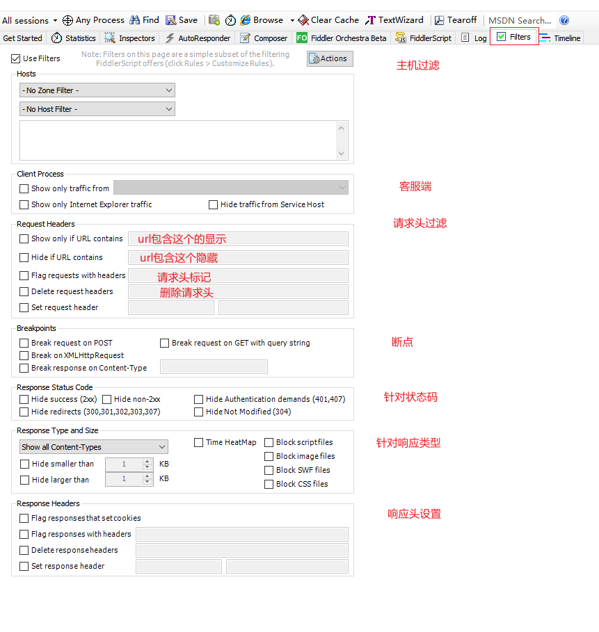 3、AutomaticBreakpoints:自动在[请求前]或[响应后]设置断点。IgnoreImage触发器控制这些断点是否作用于图片请求。
