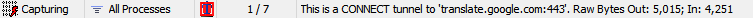 1、显示的Fiddler是否处于捕捉状态(开启/关闭状态),可以点击该区域切换。