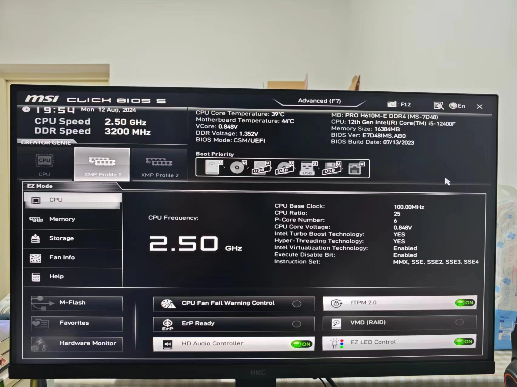 我是在一次很正常的重启中突然出现这个问题的,主机亮灯,显示器黑屏(有信号连接,可以听到开启动画声音),键鼠正常亮灯,主板故障灯中的AVG亮了会儿白灯。