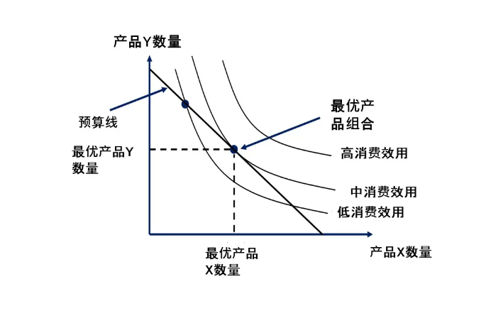 - 越高位置的无差异曲线代表更高的效用水平,因此,消费者会更喜欢位于更高无差异曲线上的任意组合。
